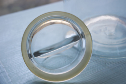 フィンランド、Riihimaen社の密閉ができる蓋付きの保存ボトルです。1910年創業のリヒマエン社は、主に家庭用のボトルやケースを製造していたガラスメーカーです。中でもこちらの保存容器は、開閉の仕組みにもデザイン性が感じられ、キッチンに飾っておきたくなります。底にはリヒマエン社のトレードマークのオオヤマネコがデザインされています。500デシリットルごとにメモリがついているので、オリーブオイルやミルクを保存するのはとても便利かもしれません。ピクルスやフルーツのシロップ、塩レモンなどを作ってみてはいかがでしょうか。
