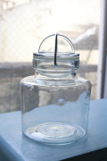 フィンランド、Riihimaen社の密閉ができる蓋付きの保存ボトルです。1910年創業のリヒマエン社は、主に家庭用のボトルやケースを製造していたガラスメーカーです。中でもこちらの保存容器は、開閉の仕組みにもデザイン性が感じられ、キッチンに飾っておきたくなります。底にはリヒマエン社のトレードマークのオオヤマネコがデザインされています。500デシリットルごとにメモリがついているので、オリーブオイルやミルクを保存するのはとても便利かもしれません。ピクルスやフルーツのシロップ、塩レモンなどを作ってみてはいかがでしょうか。