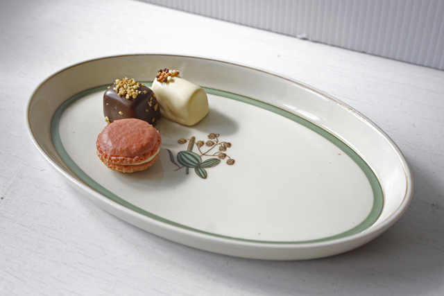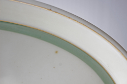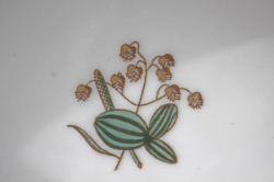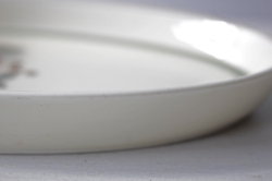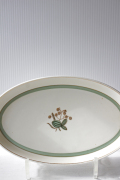 デンマーク、Royal Copenhagenのオーバルプレートです。地色はアイボリーで、金彩、アクセントにモスグリーンのラインが入ったクラシックな雰囲気です。Quaking grassは日本では小判草と言う名でふんわり、ふっくらとした可憐なお花です。1950年代に製作されていますので今の時代にない、ノスタルジックなオールド感が味わってもらえそうです。ちょっとしたティータイムにお菓子などのせて楽しんでください。