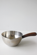 デンマークで見つけたヴィンテージのステンレスソースパンです。柄にはチーク材が使われており、シャープなステンレスに温かな雰囲気をを出しています。
