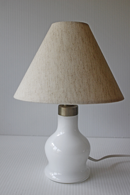 1925年創業、デンマーク王室御用達ブランドHolmegaard(ホルムゴー)のミニサイズのテーブルランプです。こちらはミルクガラスの清々しく洗練された雰囲気で、陶器とはまた違った透明感のある佇まいが魅力です。電気器具は、日本仕様に国内メーカーに取り付けていただいておりますのですぐにお使いいただけます。シェードはオリジナルではありませんが、シェード専門店にて麻素材のシンプルなものをご用意しました。ランプのサイズに合わせてお付けしていますが、シェードが不要の場合は、定価より2500円引きとさせていただきます。