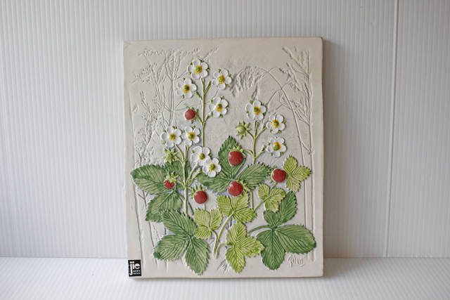 スウェーデンのjie gantofta社製の陶器の壁掛けです。Jieの陶板は可憐なお花がデザインされているものが多く、可愛らしいものからシックなものまでお気に入りを見つけてください。白地に可愛らしいイチゴのモチーフで、おすすめの作品です。