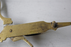 デンマークで見つけた真鍮のろうそくの芯取りです。ろうそくを吹き消すだけでは、芯が残り、黒いモクモクとした煙が出ることもあり、こちらの芯取りで、焦げたススをすくうように当てると、芯取りの受け皿にススがパラパラっと取り除くことができ、大変実用的です。オブジェとして飾って頂いても、落ち着いたアンティークのインテリアを演出できそうです。