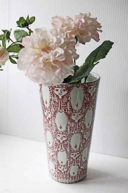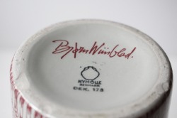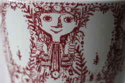 デンマークの国民的人気アーティスト/Bjorn Wiinblad(ヴョルン・ウィンブラッド)のフラワーベースです。大きめの存在感ある大きさで、前面に可愛らしい女の子のモチーフがぐるりと幾何学模様のように並んでデザインされています。口の開いたフォルムでお花を飾るにも使いやすく、お手入れもしやすいので、とてもおススメです。こちらは1960年代に作られた市場でもなかなか見かけないNymolle(二モール)社のもので、当店、初入荷の作品です!