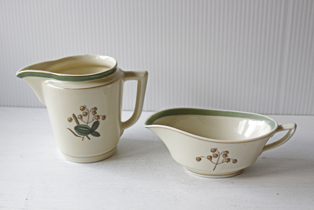 デンマーク、Royal Copenhagenのソースボードです。地色はアイボリーで、金彩、アクセントにモスグリーンのラインが入ったクラシックな雰囲気です。Quaking grassは日本では小判草と言う名でふんわり、ふっくらとした可憐なお花です。1950年代に製作されていますので今の時代にない、ノスタルジックなオールド感が味わってもらえそうです。