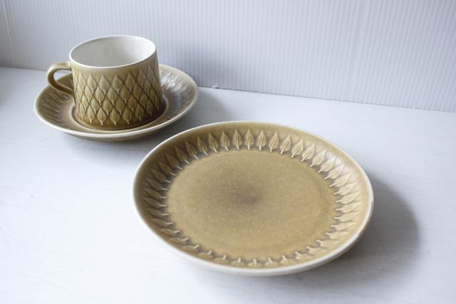 デンマーク、イェンス・クイストゴー(Jens.H.Quistgaard)デザインreliefシリーズのケーキプレートです。葉っぱの形をモチーフにした絵柄が素敵なシリーズです。マットな釉薬を使用しているため、落ち着いた雰囲気を醸しだしています。