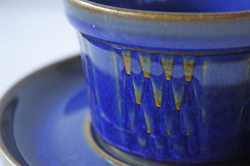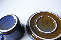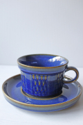 デンマークの小さな島(ボーホルム島)に1835年から1996年まで存在した陶器メーカーSoholm(スーホルム)の青のカップ&ソーサーです。ぽってりとした厚みのあるフォルム、深いマリンブルーにブラウンが浮かび上がってとても美しいです。
