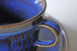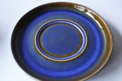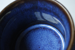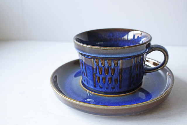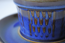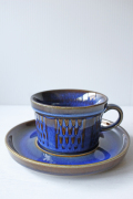 デンマークの小さな島(ボーホルム島)に1835年から1996年まで存在した陶器メーカーSoholm(スーホルム)の青のカップ&ソーサーです。ぽってりとした厚みのあるフォルム、深いマリンブルーにブラウンが浮かび上がってとても美しいです。