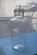 フィンランド、Riihimaen社の密閉ができる蓋付きの保存ボトルです。1910年創業のリヒマエン社は、主に家庭用のボトルやケースを製造していたガラスメーカーです。中でもこちらの保存容器は、開閉の仕組みにもデザイン性が感じられ、キッチンに飾っておきたくなります。底にはリヒマエン社のトレードマークのオオヤマネコがデザインされています。100デシリットルごとにメモリがついているので、オリーブオイルやミルクを保存するのはとても便利かもしれません。ピクルスやフルーツのシロップ、塩レモンなどを作ってみてはいかがでしょうか。