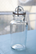 フィンランド、Riihimaen社の密閉ができる蓋付きの保存ボトルです。1910年創業のリヒマエン社は、主に家庭用のボトルやケースを製造していたガラスメーカーです。中でもこちらの保存容器は、開閉の仕組みにもデザイン性が感じられ、キッチンに飾っておきたくなります。底にはリヒマエン社のトレードマークのオオヤマネコがデザインされています。50mlずつ容量がメモリがついているので、オリーブオイルやミルクを保存するのはとても便利かもしれません。ピクルスやフルーツのシロップ、流行の塩レモンなどを作ってみてはいかがでしょうか。