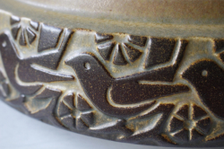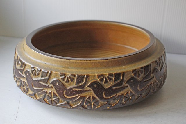 デンマーク、Michael Andersen & Son社のヴィンテージの深ボウルです。側面には小鳥がデザインされた愛らしいデザインです。大きな作品なので、煮物やサラダなどを盛りつけていただいたり、果物を盛ってもよいでしょう。