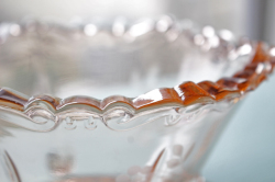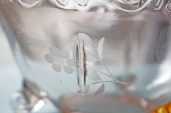 デンマークで見つけたヴィンテージのガラスの器です。こちらは脚付きのロマンティックなフォルムで、カッティングがキラキラと美しいです。どこか懐かしさを感じるほっこりする器で、お勧めです。