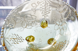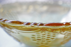 デンマークで見つけたヴィンテージのガラスの器です。こちらは脚付きのロマンティックなフォルムで、カッティングがキラキラと美しいです。どこか懐かしさを感じるほっこりする器で、お勧めです。
