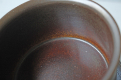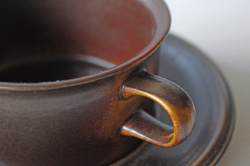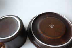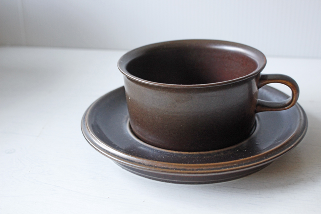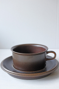 フィンランド、ARABIAのデザイナーUlla Procope(ウラ・プロコッペ)デザイン、Ruskaシリーズのカップ&ソーサーです。備前焼きに通じるような渋いデザインです。ひとつひとつ微妙に異なる釉薬の趣が魅力です。フォルムは「Kosmos」と同じです。濃い目に入れたコーヒーが似合いそうです。個々に個性がありますのでお気に入りを見つけてください。