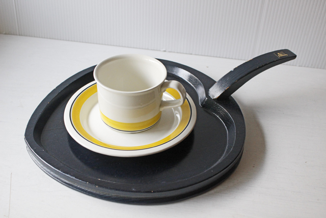 スウェーデンJIE社の持ち手つきトレイです。こちらは陶板やフィギュアで有名なスウェーデンのJIE社のトレイで、ハート型のデザイン、厚みのあるしっかり&丁寧な造りが特徴で、使い込むほど馴染む、おすすめの作品です。Jie社発売のレアな作品、またお色もネイビーカラーと珍しく、お気に入りの食器を一緒に楽しんで頂けます。