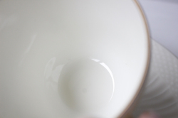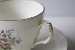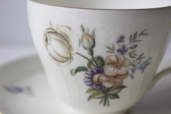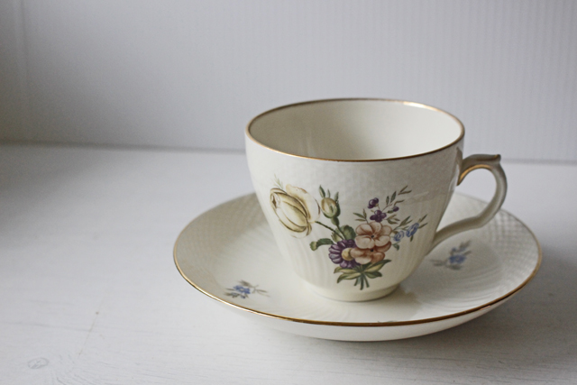 デンマーク、Royal Copenhagenのコーヒーカップ&ソーサーです。こちらはアイボリーの地にロマンティックなフラワーモチーフがデザインされており、ロマンティックな印象です。コロンとしたフォルムに型押し&金彩がクラシカルでMade Inデンマークの古き良き時代のロイヤルコペンハーゲンが感じられるおすすめの作品です。今回入荷分の製造年代は1950年代から1960年代のものです。