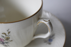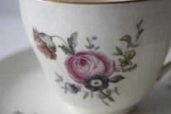 デンマーク、Royal Copenhagenのコーヒーカップ&ソーサーです。こちらはアイボリーの地にロマンティックなフラワーモチーフがデザインされており、ロマンティックな印象です。コロンとしたフォルムに型押し&金彩がクラシカルでMade Inデンマークの古き良き時代のロイヤルコペンハーゲンが感じられるおすすめの作品です。今回入荷分の製造年代は1950年代から1960年代のものです。