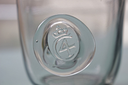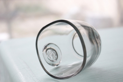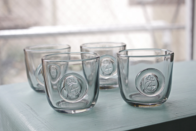 デンマーク、Holmegaard(ホルムガード)のガラスのグラスです。こちらは1960年代に作られたデザインで、可愛らしい王冠に4の数字がモチーフです。王冠のマークにアルファベットのC、その中に4の数字がデザインされていることから、デンマークの国王、クリスチャン4世をイメージしたものかもしれません。クールな印象のライトグレー色、手にコロンと馴染む丸みのあるスクエアフォルムが、素敵な作品です。一つ一つが手作りの為、個性的で味わいがあります。