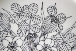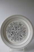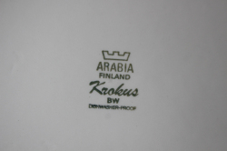 フィンランド、ARABIA/Esteri Tomula/エステリ・トムラのデザインした、クロッカスシリーズのディナープレートです。エステリ・トムラは、1947年~1984年まで長きにわたりアラビアで活躍した装飾デザイナーです。北欧の春を待ちわびるクロッカスが見事な線描で表現されています。あえてお色を使わず、大人っぽい仕上がりとなっています。製造期間が2年と短かったため、市場でも見つけるのが困難なお品です。お探しの方は、お見逃しなく。こちらは26cmと大きめですので、たっぷりとお料理などをもてなせそうです。