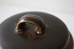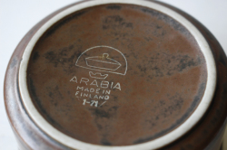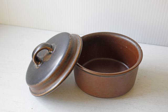 フィンランド、ARABIAのUlla Procope(ウラ・プロコッペ)デザイン、Ruskaシリーズのシュガーポットです。備前焼きに通じるような渋いデザインです。ひとつひとつ微妙に異なる釉薬の趣が魅力です。