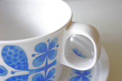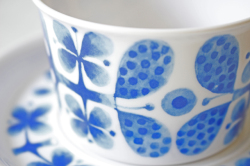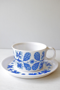 スウェーデン、グスタフスベリ社、Bluesシリーズのヴィンテージカップ&ソーサーです。こちらは同社の看板デザイナー、リンドベリが手掛けており、鮮やかで美しいフラワーモチーフとコバルトカラーが特徴で、当時、とても評価の高かった作品になります。10年ほど前に復刻版として、スウェーデンのOpto design/オプトデザイン社から発売されましたが、こちらはグスタフスベリの刻印の入った1960年代のオリジナル品で、市場にもあまり出ていない作品になります。厚みのあるしっかりとした造りで、おすすめです。