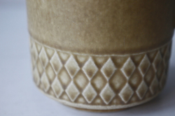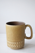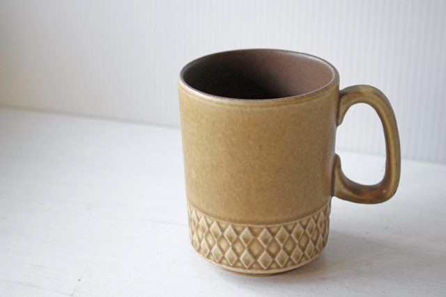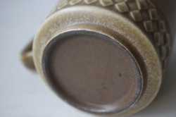 旧西ドイツ、ceramanoのマグカップです。土の温かさを感じる厚みのあるフォルムにマットな釉薬がかけられています。立体的なダイヤ模様がデザインされており、レトロ感のある素敵なマグカップです。