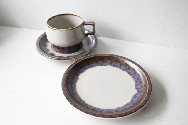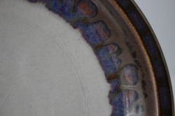 デンマーク、Jens.H.Quistgaard(イェンス・クイストゴー)デザインMexicoシリーズのケーキプレートです。釉薬の流れによって出来た自然な景色、ブラウンの下から浮かび上がる紫の幻想的な雰囲気が素敵なお品です。