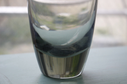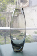 デンマーク、Holmegaard(ホルムゴー)のガラスの花瓶です。落ち着きのあるクリアグレーのガラスのシンプルなフォルムでどんなお花でも合わせられそうです。それなりのサイズがあり重さもあるので安定感がありますので、大き目のお花もOKです。滑らかな肌触りは、質の高さを感じさせます。裏面に刻印があります。