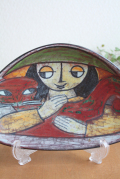 デンマークのMichael Andersen & Son社の三角ボウルです。デザインは数々の女性らしい柔らかな作品を生み出したMarianne starckになります。こちらの作品は、少女とネコがモチーフでいたずらっ子そうなネコと少女の表情がユニークです。こちらはドイツ/ブリュッセルの世界万博で金賞を受賞したPersia Techniqueと呼ばれる貫入による独特の技法が使われています。
