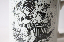 デンマークの人気デザイナーBjorn Wiinblad(ヴョルン・ウィンブラッド)のマンスリーマグカップです。こちらのシリーズは1月から12月までの1枚1枚に男女の出会い、結婚、妊娠、出産までを四季を交えながら描いています。8月のテーマは、「BYE BYE」。楽しそうな虫取りの場面ですが、北欧の短い夏を惜しむかのようなこのタイトルです。