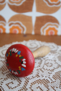 デンマークで見つけた靴下のほころびを繕うときに使う古い道具です。きのこの頭のほうを靴下の中にいれ、穴の開いた部分に合わせて針で縫っていくそうです。今回入荷分は、キノコの傘部分にハンドペイントでデコレーションされており可愛らしい雰囲気です。8/28のデンマーク・ペッタンさんのブログに関連記事があります。よろしければ御覧下さい。