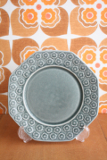 デンマーク、Jens.H.Quistgaard(イェンス・クイストゴー)デザイン「Plum」シリーズの八角プレートです杏の花の可愛らしいモチーフでありながら、ブルーグレーの落ち着いた色合いが甘くなりすぎず素敵です。ツヤのないマットな釉薬が使われており、見ていてホッと和む雰囲気を持っています。