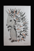 デンマークのアーティストMonika Petersenさんの版画です。こちらはハリネズミがモチーフになっています。背中のスパイキーな針に色が乗せてあり、