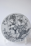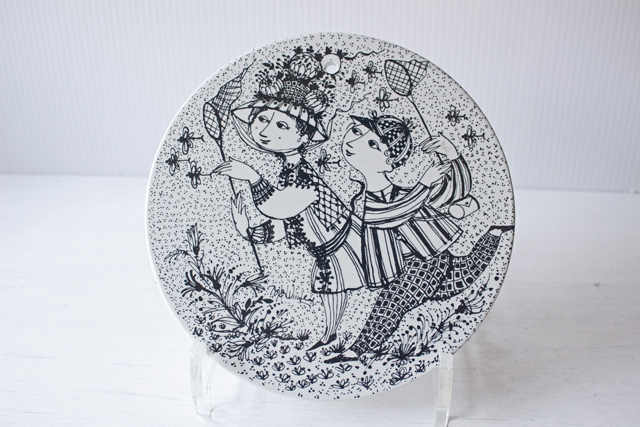 デンマークの人気デザイナーBjorn Wiinblad(ヴョルン・ウィンブラッド)の美しい絵皿です。こちらのシリーズは1月から12月までの1枚1枚に男女の出会い、結婚、妊娠、出産までを四季を交えながら描いています。8月のタイトルは、「BYE BYE」仲良く虫取りをする2人が描かれています。短い北欧の夏を名残惜しんでいるのでしょうか。