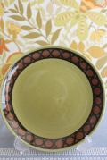 1960年代にFiggoと合併したノルウェーのStavangerflint(スタヴァンゲルフリント)社のケーキプレートです。丸みのあるぽってりとしたフォルムにレンガ色の丸い模様がデザインされています。ノルウェー陶器らしいモスグリーンのお色が温かな食卓を演出し、ほっこり和むティータイムをお過ごしください。