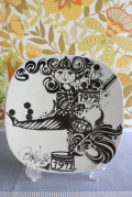 デンマークの人気デザイナーBjorn Wiinblad(ヴョルン・ウィンブラッド)の美しい絵皿です。こちらは、イヤープレートになります。道化師がダンスを踊っています。1971年の太鼓の上に立ち、1972年の太鼓を手にしています。新しい年への移行をユニークに表現しています。