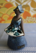 スウェーデン製の陶器の花瓶です。デザイナーはUlla Skogh。こちらは女性がエプロンを広げている様子がデザインされています。エプロンの両側に開いた穴からお花をさしていただけます。ドレスや帽子にはツヤのある釉薬がかけられており、顔や手など素肌にはマットな素地のままという対比が温かな雰囲気を醸しています。