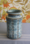 デンマークの小さな島(ボーンホルム島)に1835年から1996年まで存在した名窯Soholm(スーホルム)のフラワーベースです。ミルク色の混ざったペールブルーが柔らかで優しい雰囲気を醸しています。ハンドメイドで作られた味わいのある作品です。