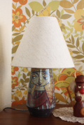 デンマークのMichael Andersen & Son社のテーブルランプです。こちらはドイツ/ブリュッセルの世界万博で金賞を受賞したPersia Techniqueと呼ばれる貫入による独特の技法が使われています。モザイク画のような味わいが個性的な作品で、ユニークな表情の少女が小鳥を手に乗せているデザインです。