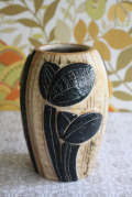デンマーク、Soholm(スーホルム)のヴィンテージ花瓶です。スーホルムの中でも人気のあるNoomiデザインです。こちらは土の香りの残る質感で可愛らしい葉っぱ模様が立体的にデザインされています。当店初入荷の珍しいものです。