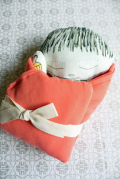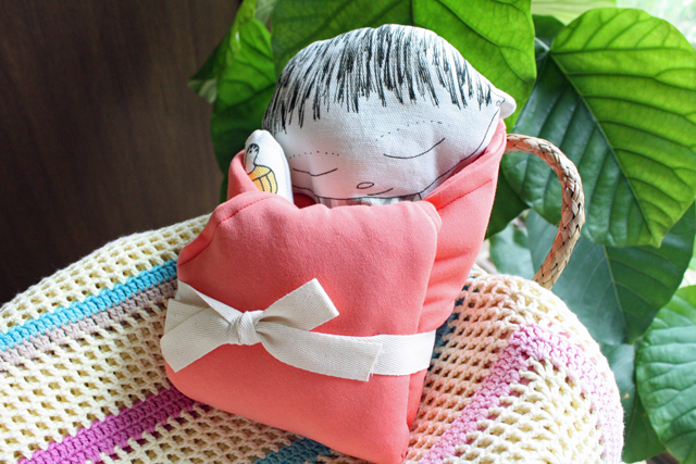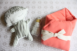 デンマークのデザイナーLena nicolajsenのBE MY BABYのお人形です。お人形はすべてデンマーク製で環境に優しく、一つ一つ大切に作られたものです。布製ですので、赤ちゃんがかじったりしても目などのパーツが取れることもなく、安全なところと、汚れたら洗濯機で洗えるのも実用的です。こちらはお人形にお包みと哺乳瓶がセットになっております。お包みに包まってすやすやと眠っている可愛らしい赤ちゃんは出産のお祝いなどでもおススメです。