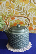 デンマーク、Jens.H.Quistgaard(イェンス・クイストゴー)デザイン「Plum」シリーズのティーポットです。「Plum」プラムシリーズは、デンマークでも品薄になっております。杏の花の可愛らしいモチーフでありながら、ブルーグレーの落ち着いた色合いが甘くなりすぎず素敵です。ツヤのないマットな釉薬が使われており、見ていてホッと和む雰囲気を持っています。