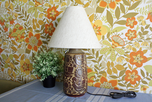 デンマーク、Michael Andersen & Son社のヴィンテージランプです。古代壁画のようなトリとお花がデザインされています。マットな釉薬を使い土の温かさを感じる作品です。今回入荷分は、とても大きなサイズで存在感があります。