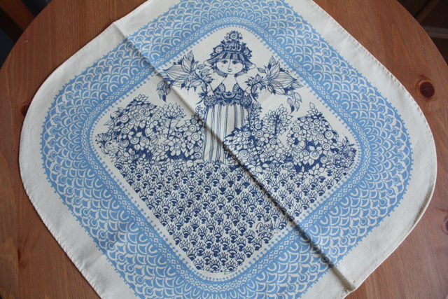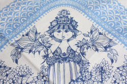 デンマークの国民的人気アーティスト、Bjorn Wiinbladデザインのランチョンマットです。可愛らしい少女がデザインされたロマンチックな図柄です。今回入荷分は、あまり使用感のないよいコンディションでおススメです。クッションやバッグにリメイクしても素敵でしょう。