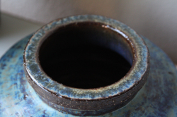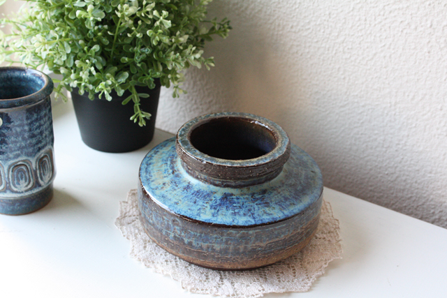 デンマーク、Michael Andersen & Son社のヴィンテージの花瓶です。マリンブルーの釉薬と土の温かさが感じられる素焼きとのコントラストが美しい作品です。どっしりと大きなベースですので、存在感があります。