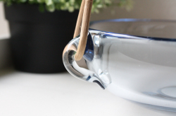 デンマーク、Holmegaard(ホルムゴー)の持ち手付き丸ボウルです。こちらは当店初入荷のデザインで、お花を生けたり、果物やお菓子を盛り付けたりと多彩にお使いいただけるでしょう。透明感のある美しいアクアブルーや滑らかな肌触りは、質の高さを感じさせます。