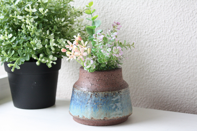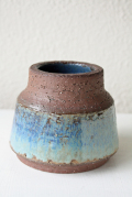 デンマーク、Michael Andersen & Son社のヴィンテージの花瓶です。柔らかなアクアブルーの釉薬と土の温かさが感じられる素焼きとのコントラストが美しい作品です。