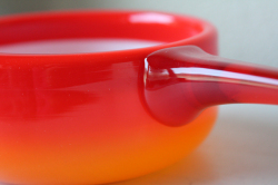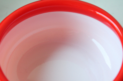 デンマークで見つけたHolmegaardのヴィンテージガラスの片手鍋です。外側のガラスと内側のミルクガラスの2重構造になったPaletシリーズは、デンマーク国内でも評価が高くたくさんのコレクターがいます。透明感のあるキャンディのような持ち手も愛らしく、実用として使っていただくだけでなくフルーツやデザートを盛り付けていただいても涼しげでよいでしょう。