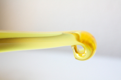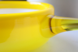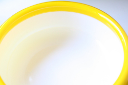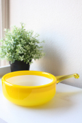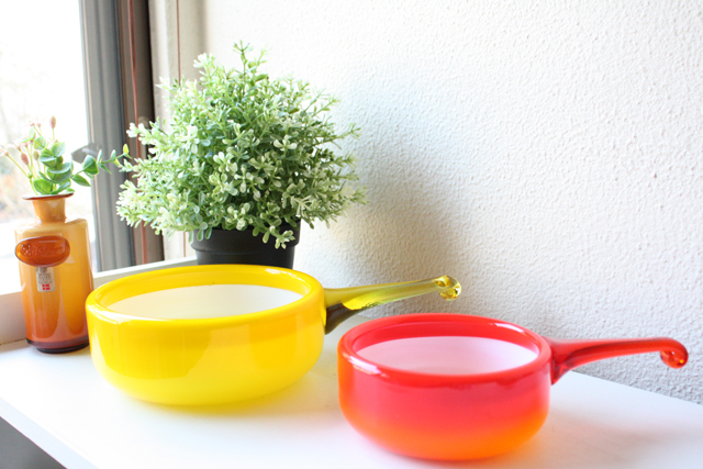 デンマークで見つけたHolmegaardのヴィンテージガラスの片手鍋です。外側のガラスと内側のミルクガラスの2重構造になったPaletシリーズは、デンマーク国内でも評価が高くたくさんのコレクターがいます。透明感のあるキャンディのような持ち手も愛らしく、実用として使っていただくだけでなくフルーツやデザートを盛り付けていただいても涼しげでよいでしょう。