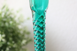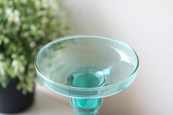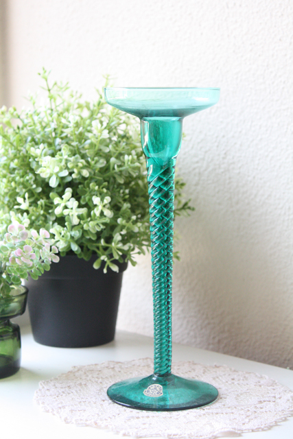 デンマーク、Holmegaard(ホルムゴー)の人気デザイン、アマーグラスの足つきグラスキャンドルホルダーです。足つきの優雅なフォルムに、アクアグリーンの爽やかなお色が魅力です。こちらは1955年から1980年代まで製作されていた今でも人気のアマーグラスです。今回入荷分はHolmegaardの前身、Kastrup Glasvaerk時代に製作された作品でお色も大変珍しいアクアグリーンです。年代としては1955年から1965年の間に製作されたものになります。キャンドルを灯しても素敵ですし、又、高さも22センチとたっぷりありますので、小さなオアシスを入れて、アイビーなど動きのある植物を生けていただくと素敵なインテリアとなるでしょう。大変美しい作品です。コレクションにいかがでしょうか。